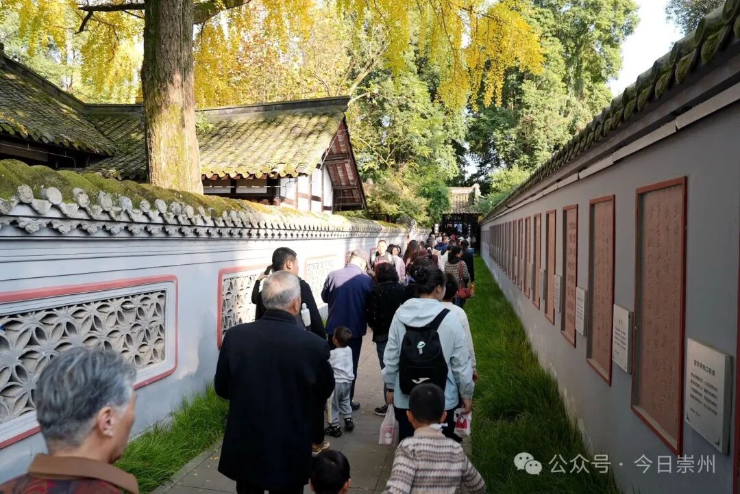 與園中的喧鬧形成對比,陸游祠內(nèi)彌漫著一種文雅而莊重的氣息。祠內(nèi),游客們靜靜地瞻仰放翁先生的塑像,品讀墻上的詩詞碑刻,在陸游的詩詞中領略“江湖四十余年夢,豈信人間有蜀州”的文化盛景。