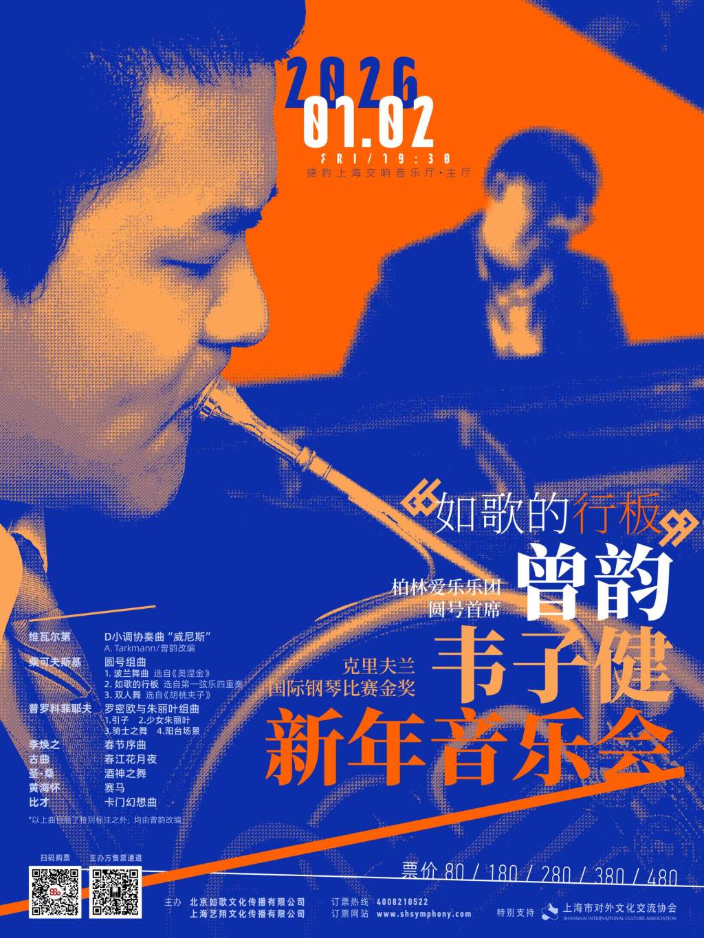 2026年1月2日在上海交響音樂廳,曾韻將和發(fā)小、鋼琴家韋子健同臺,獻上一場以圓號為主角的新年音樂會,用金色號角召喚新年憧憬。