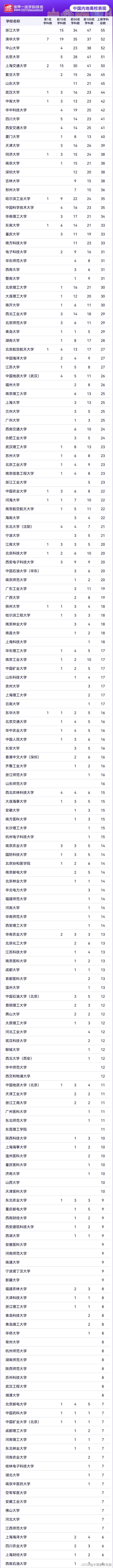 從上榜學(xué)科數(shù)來看,浙江大學(xué)延續(xù)了去年的優(yōu)勢,以55個上榜學(xué)科數(shù)登頂中國內(nèi)地第一,同時也成為全球上榜學(xué)科數(shù)量最多的學(xué)校。清華大學(xué)、中山大學(xué)、北京大學(xué)、上海交通大學(xué)、復(fù)旦大學(xué)、山東大學(xué)、武漢大學(xué)、中南大學(xué)、華中科技大學(xué)、四川大學(xué)、西安交通大學(xué)、廈門大學(xué)的上榜學(xué)科數(shù)也都達(dá)到或超過40個。