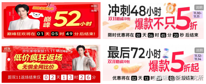 此前,京東巔峰52小時(shí),淘寶沖刺48小時(shí),各平臺開啟了雙11倒計(jì)時(shí)。雙11當(dāng)天,原以為一年一度的雙11大促迎來最終章,但各平臺活動延續(xù)至了11月14日,京東“巔峰”口號變限時(shí)返場,淘寶“沖刺”口號變“最后72小時(shí)”。