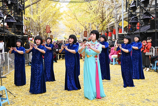 初冬的天水“黃金大道”,銀杏灑金,游人如織。11月16日,在“‘銀’客天下·‘杏’福秦州”第七屆文化旅游宣傳周期間,天水市文化和旅游局組織天水市文化館秦腔藝術(shù)團(tuán)全體學(xué)員,在此舉辦秦腔專場演出活動。一陣陣高亢激昂的秦腔古韻在“黃金大道”響起,為絕美的自然畫卷注入了厚重的文化靈魂,吸引了眾多市民游客駐足欣賞。