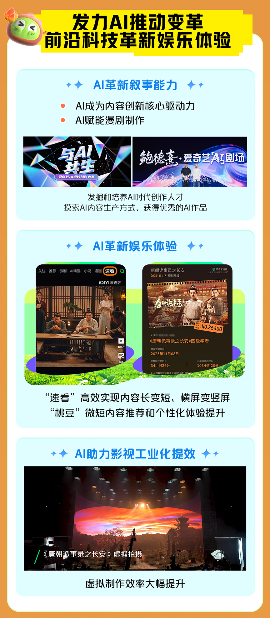 在內(nèi)容賽道保持頭部競爭力的同時,愛奇藝積極抓住AI技術(shù)進步帶來的新機遇,重塑內(nèi)容的生產(chǎn)與消費方式。