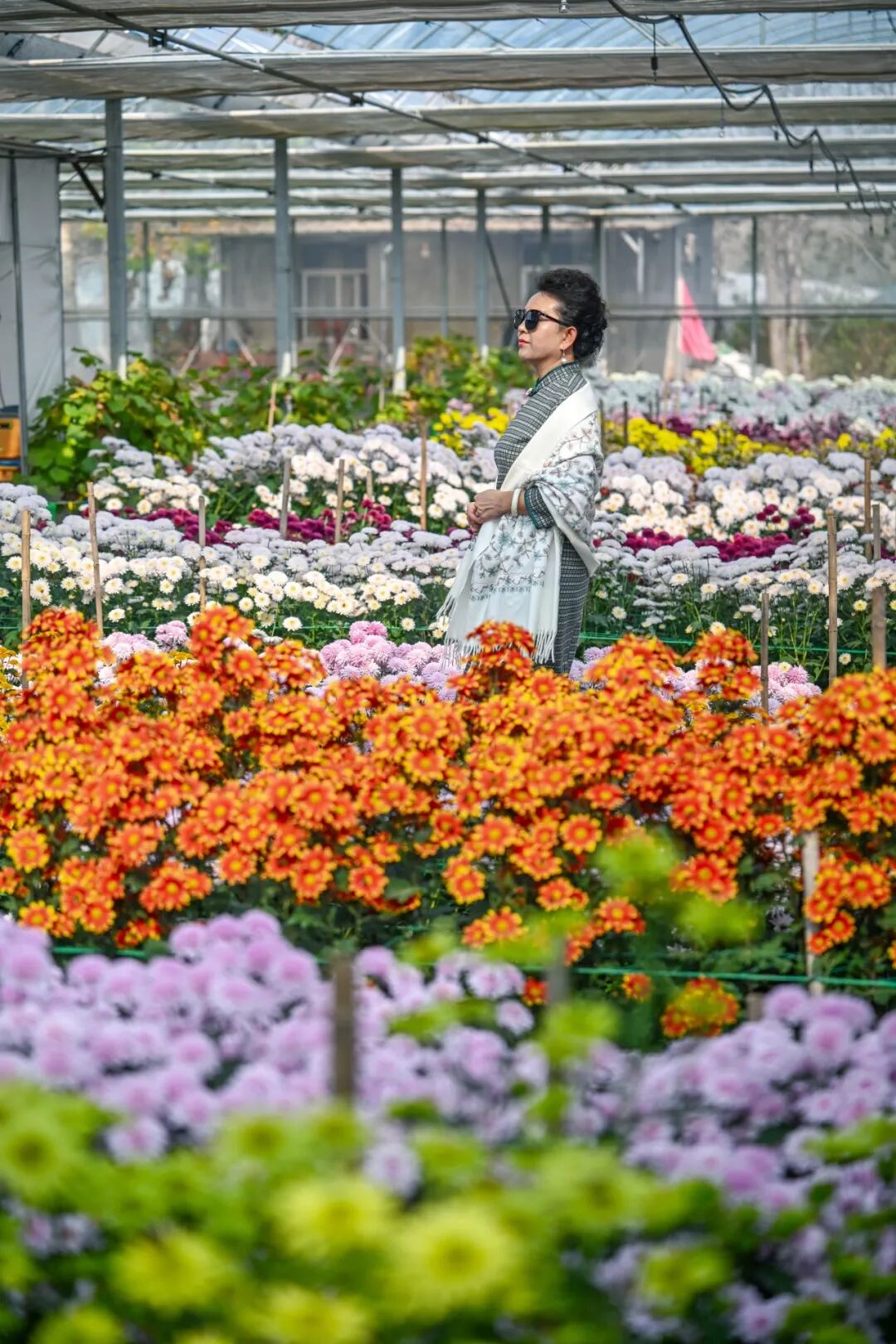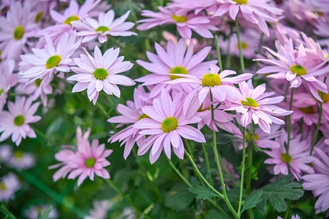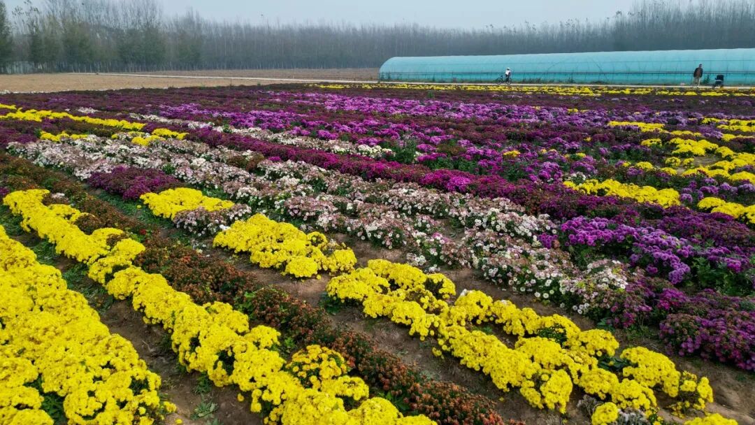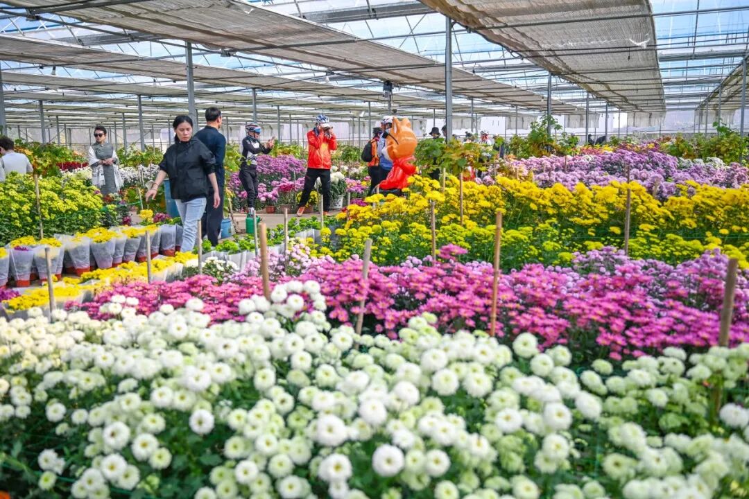 大棚深處藏著別樣俏皮:粉、白、黃三色“球菊”抱團(tuán)而生,星星點(diǎn)點(diǎn)的“小雛菊”白瓣黃心,綠萼“亳菊”清冽如翠、“白菊”似霜,還有眾多稀罕品種點(diǎn)綴其間,每一種都美得讓人挪不開眼。