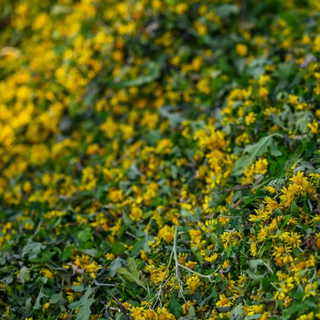 踏入菊花園,層層疊疊的藥菊鋪展眼前,陽光為花瓣鍍上金邊,隨手一拍便是大片質(zhì)感。