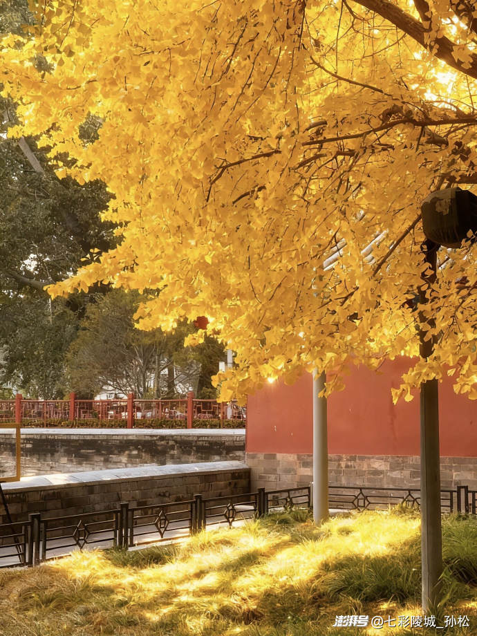 最動人的是銀杏與故宮的"共生"。它的落葉不會被立刻清掃——至少在最初幾天,金黃的葉子會鋪滿漢白玉甬道,與青磚、紅墻構成天然的色彩交響。記得有年冬天路過,看見清潔工阿姨蹲在銀杏樹下,小心翼翼地把壓在落葉下的石刻銘文清理出來:"這些葉子雖美,可不能蓋住了老祖宗的字。"而到了深冬,枯黃的銀杏枝椏會勾勒出獨特的剪影,與灰瓦白墻一起,成為故宮冬日最素凈的底色。有攝影師說,故宮的四季各有其美,但銀杏季最"活"——它讓冰冷的建筑有了溫度,讓厚重的歷史有了呼吸。