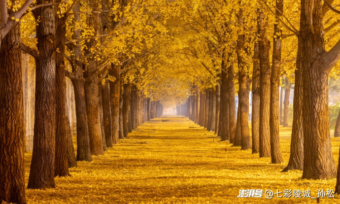 晨光中的銀杏最是溫柔。薄霧如輕紗纏繞枝頭,葉片上凝結(jié)的露珠將陽光折射成七彩光斑,風過時萬千金箔簌簌顫動。偶爾有早起的麻雀掠過,驚起一片金色的雨,落在青石板上發(fā)出沙沙輕響,像是秋天在低語。此時站在樹下,能聞到清冽的草木香,混合著泥土的芬芳,讓人想起童年時收集落葉的玻璃罐。