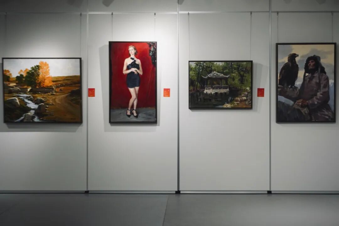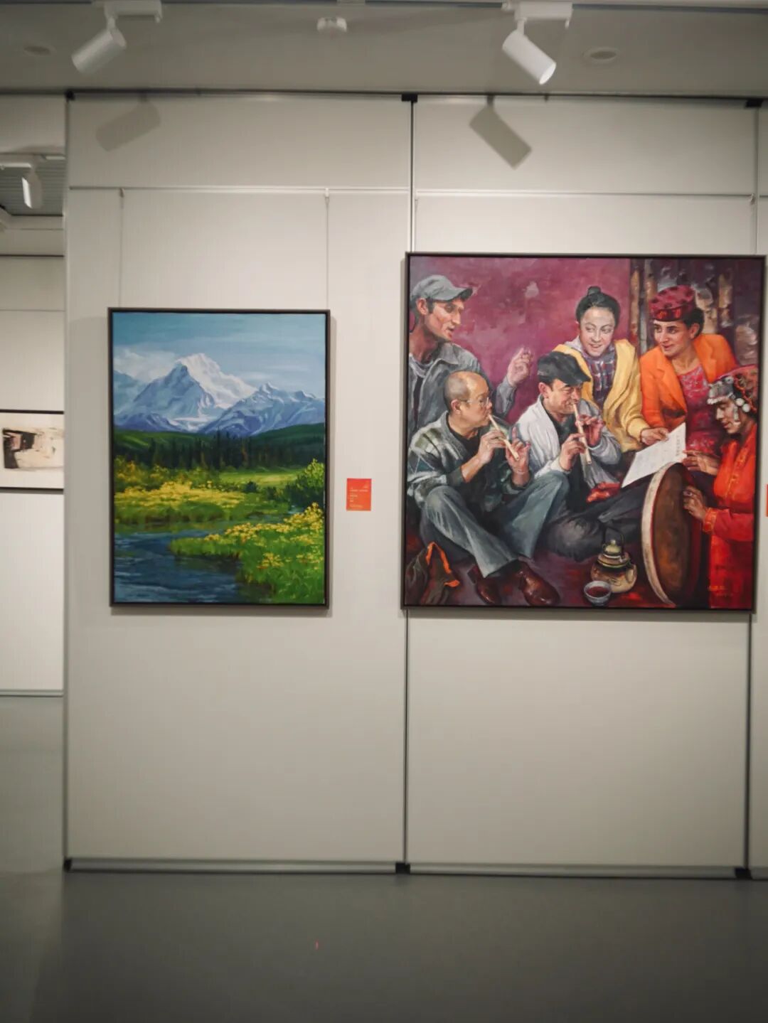 在同一展館,還有場免費(fèi)的畫展——“蘇韻伊情·伊路有寧”美術(shù)作品交流展。