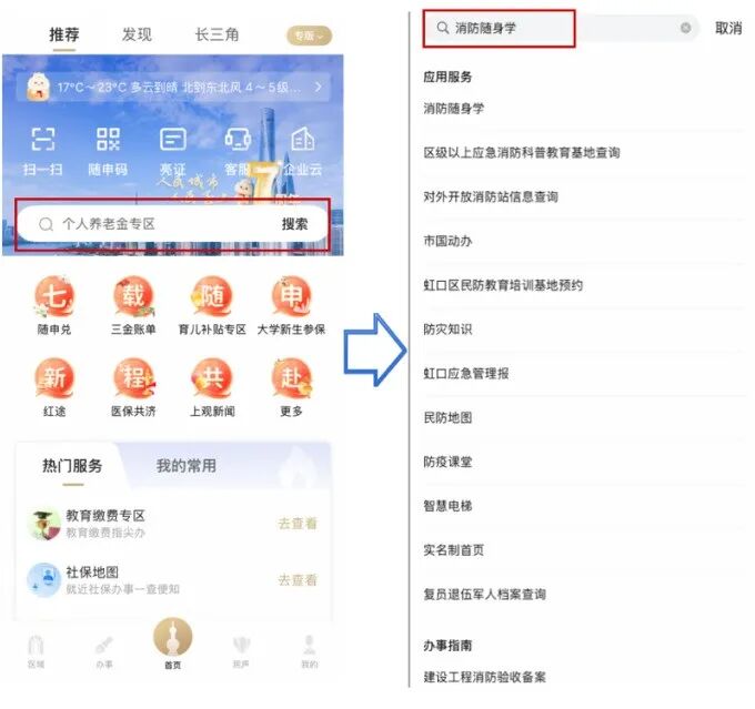 在“隨申辦市民云”APP內(nèi)搜索「消防隨身學(xué)」即可進(jìn)入。