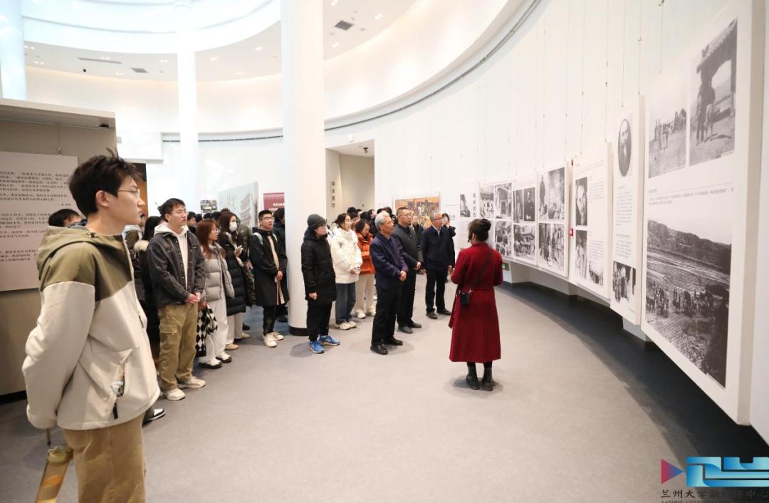 11月18日上午,“莫高精神”專題展在蘭州大學(xué)榆中校區(qū)博物館開展。甘肅省委黨史研究室副主任岳峰偉,敦煌研究院黨委副書記郭青林,蘭州大學(xué)黨委副書記曹愛輝,甘肅省委黨史研究室一處處長賈玉婷,蘭州大學(xué)黨委宣傳部、博物館、土木工程與力學(xué)學(xué)院、歷史文化學(xué)院負(fù)責(zé)人及師生代表參加活動。