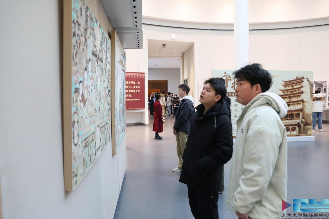 曹愛輝在致辭中表示,本次展覽不僅豐富了校園文化生活,更有助于師生直觀、深刻地理解敦煌文化的內(nèi)涵與特色,進一步增強文化認(rèn)同與自豪感,堅定文化自信。莫高精神所蘊含的家國情懷、奉獻精神與創(chuàng)新理念,與蘭州大學(xué)“自強不息、獨樹一幟”的校訓(xùn)精神高度契合。蘭州大學(xué)師生將不斷從中汲取智慧與力量,推動中華優(yōu)秀傳統(tǒng)文化創(chuàng)造性轉(zhuǎn)化、創(chuàng)新性發(fā)展,砥礪奮斗品格、厚植家國情懷,為建設(shè)社會主義文化強國凝聚共識、引領(lǐng)風(fēng)氣、注入動能,為實現(xiàn)中華民族偉大復(fù)興貢獻蘭大智慧與力量。
