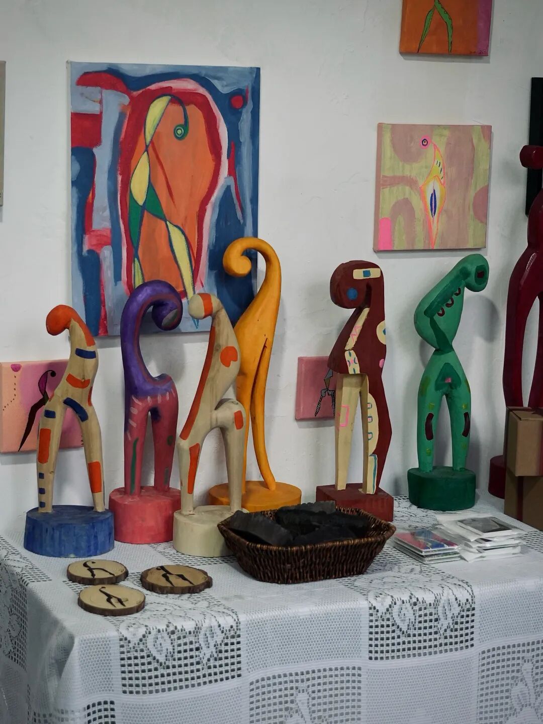 沙克瑪?shù)淖髌窂牡袼苎由斓嚼L畫(huà)、文創(chuàng),色彩依舊多樣。