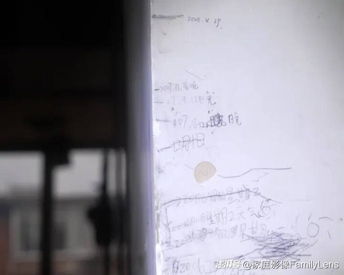 數(shù)年后,饒晨帶著攝影機(jī)再次走進(jìn)那個曾經(jīng)的家,她仿佛看到小時候的自己還被留在這里。時間無痕,卻在這一刻讓童年顯影:墻上的涂鴉,身高的刻度表,貼滿各處的貼畫……都還在。