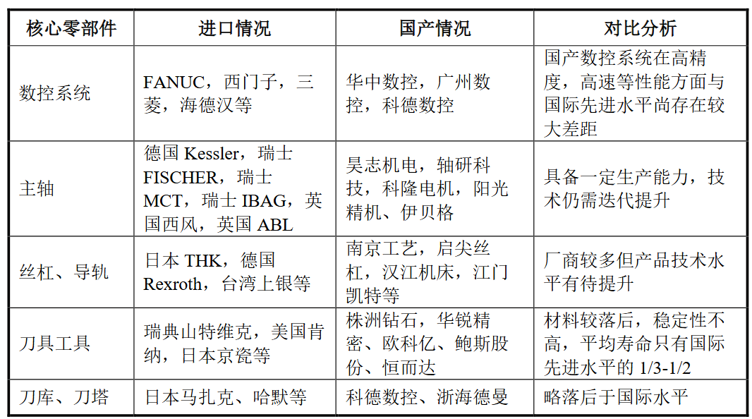 中國工業(yè)母機(jī)的核心瓶頸在于基礎(chǔ)不牢,關(guān)鍵核心零部件和技術(shù)受制于人: