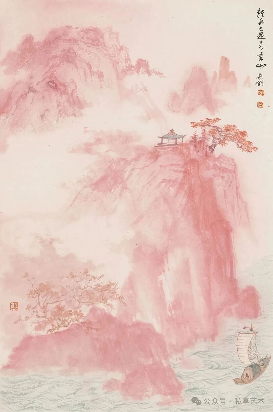 滿載雲(yún)霞一舟輕-紙本設色-62x34cm