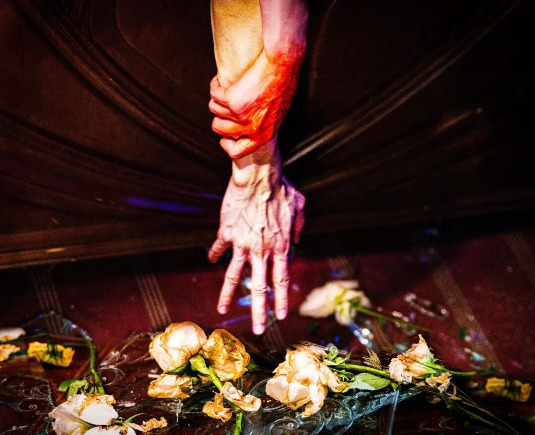 故事五代表觸覺。在二十一世紀(jì)最后的夜晚,整個世界都在末日狂歡,“迷魂者”與李庚希飾演的吸血鬼少女相遇,決定以殉道完成對這個世界的反叛,黃覺飾演的吸血鬼首領(lǐng)禁止人們“思考意義”,象征的是整個行業(yè)的“不可抗力”,隱喻電影在新時代的日出前死去,寧為玉碎,不為瓦全。