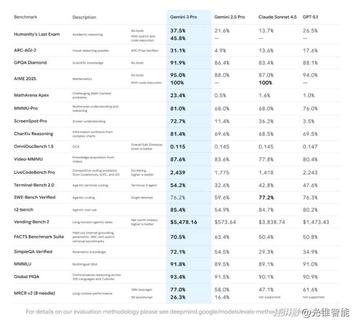 Gemini 3 的基準(zhǔn)測試結(jié)果(來源:Google)