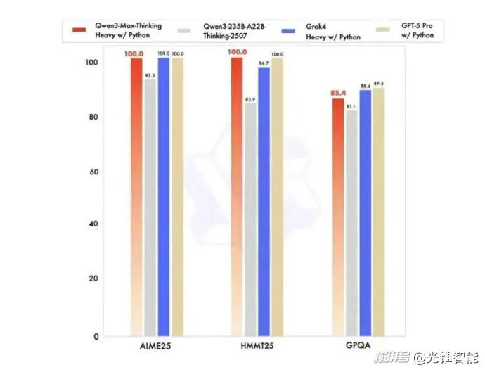 在使用和反饋迭代中,來自開發(fā)者的建議也成了反哺Qwen系模型優(yōu)化的資源。最終,萬億參數(shù)模型Qwen3-Max的發(fā)布,夯實了底層模型的技術(shù)支撐能力。就在11月初,Qwen3-Max-Thinking釋出預(yù)覽版本,在AIME 25等數(shù)學(xué)競賽測試中刷得滿分。