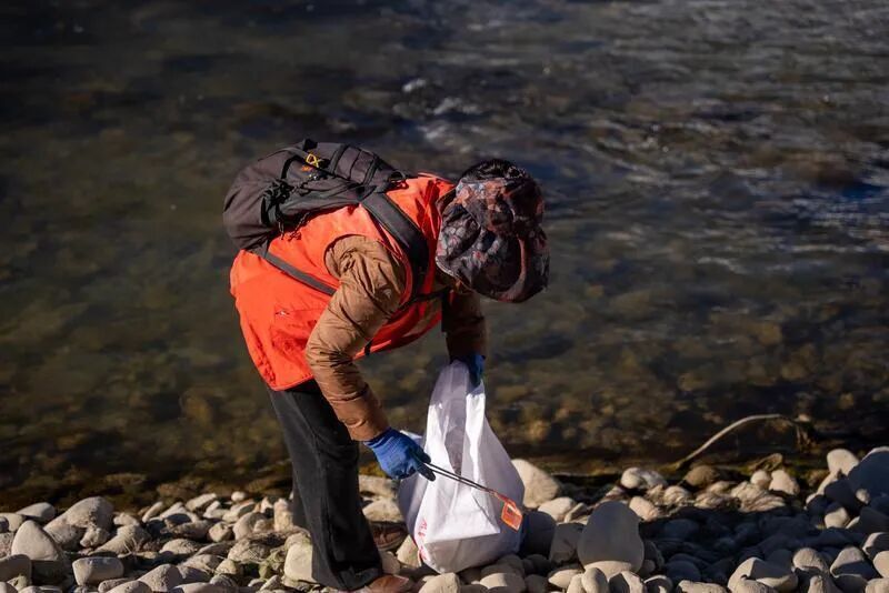 巡河之路,遠(yuǎn)非“撿垃圾”這般簡單。過去,拉薩河沿線垃圾種類繁雜,舊衣服、床單被褥、書本、煙頭、廚余垃圾散落各處,有些垃圾被水流沖到石縫里,需要彎腰、伸手,一點(diǎn)點(diǎn)摳出來;遇到汛期,河水上漲、水流湍急,河邊濕滑難行,他們還要冒著風(fēng)險(xiǎn)勸離戲水的市民。“夏天是最忙的時(shí)候,每天能勸走好幾撥人。冬天是最艱難的時(shí)候,河水冷得刺骨,風(fēng)又大,河道里經(jīng)常吹落各種垃圾,清理難度也大?!卑嗟┱f。