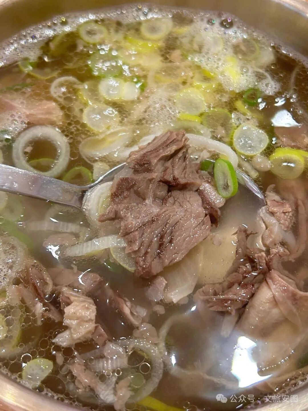 要說安圖人的暖胃清單,肯定少不了牛肉湯飯。沒有膩乎的油脂味,只有牛骨的清香。一口湯下肚,再配上一口米飯,不僅胃里暖暖的,還香香的。喜歡吃辣的話,還可以加入幾勺牛肉醬,辣乎又熱乎!