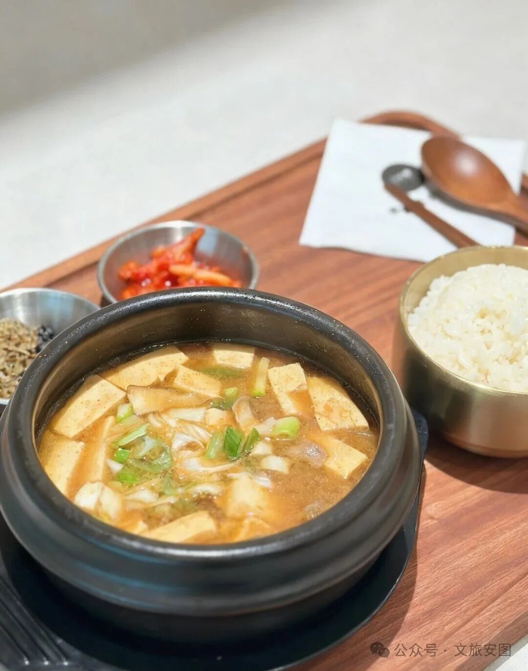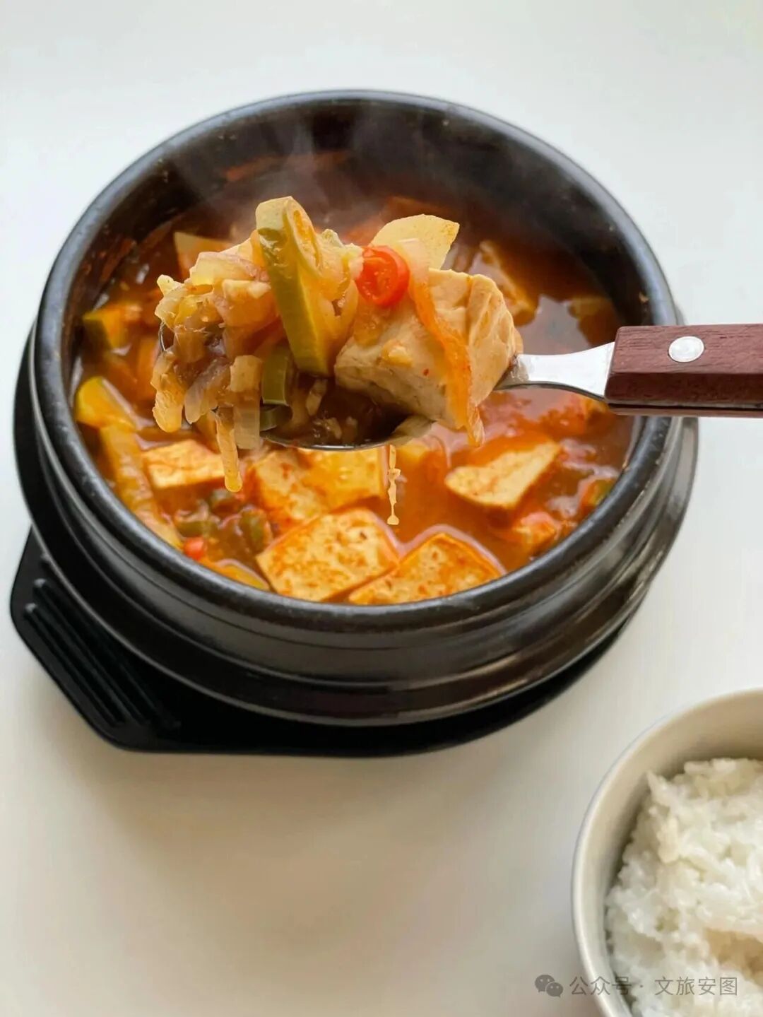 說到經(jīng)典暖胃湯,一定少不了醬湯。朝鮮族醬湯以大醬或辣醬為基底,醬香醇厚,再搭配豆腐、西葫蘆、土豆、菌菇燉煮。當(dāng)然,也可以加入五花肉等食材增加風(fēng)味。醬湯中的蔬菜經(jīng)過燉煮,釋放出清甜味道,和醬的鮮咸口味相中和。喝上一口咸中帶甜、甜而不膩,暖身屬性突出!