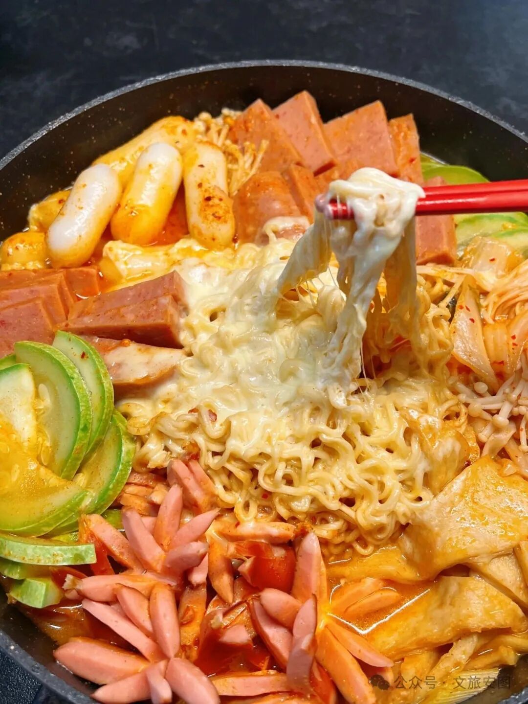部隊(duì)鍋,可謂“包羅萬象”,一鍋有葷有素、還有主食。常見的部隊(duì)鍋食材有午餐肉、肉卷、西葫蘆、黃豆芽、親親腸、泡面、芝士...... 任何想吃的食材都可以在部隊(duì)鍋里找到。而且,部隊(duì)鍋大多放在卡式爐上食用,鍋里一直都是咕嘟咕嘟的狀態(tài),冷天吃再合適不過啦!一口下去,暖身暖胃。