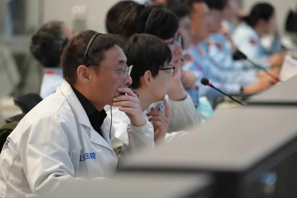 11月25日,北京航天飛行控制中心,現(xiàn)場工作人員在監(jiān)測神舟二十二號(hào)飛船與空間站組合體交會(huì)對接情況。新華社記者 王春濤 攝