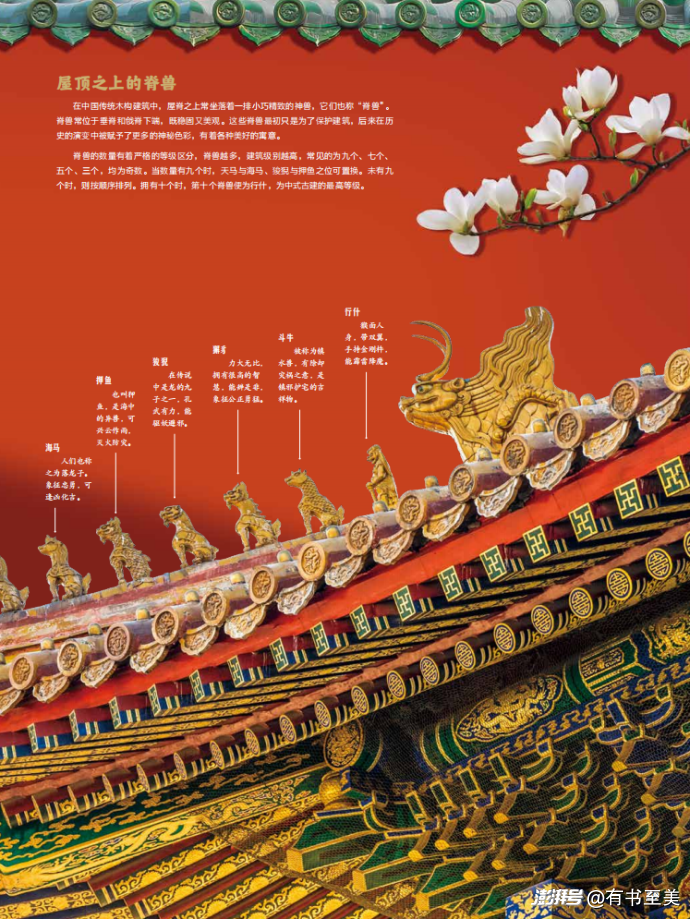 比如講到中國傳統(tǒng)木結構建筑,書中就介紹了故宮太和殿屋脊上的“脊獸”。