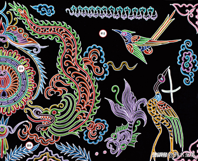 這一頁展現(xiàn)了水族馬尾繡的紋樣,真是太精美了,令人不得不佩服少數(shù)民族的創(chuàng)造力!