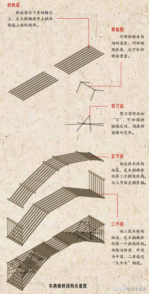 木拱廊橋的結構示意圖,簡直像在看古代橋梁的“搭建說明書”,古人的智慧真的太絕了!