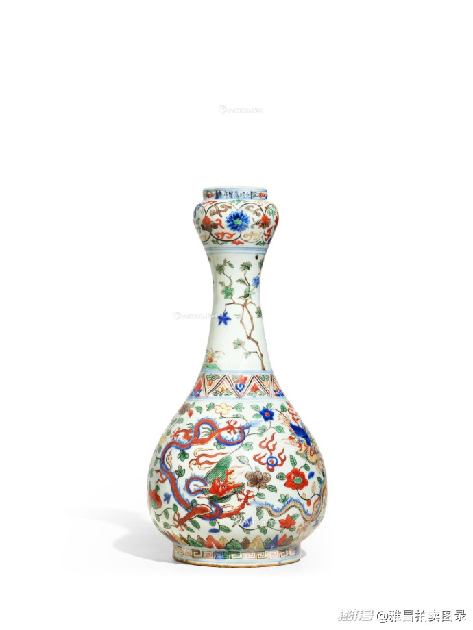 明萬歷 五彩穿花龍紋蒜頭瓶