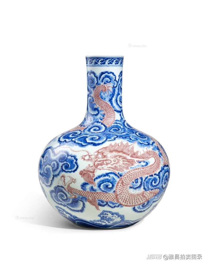 清代官窯板塊的“明星拍品”——清乾隆青花釉里紅云龍紋天球瓶,以2965.5萬港元(含傭金)的成交價榮膺本場桂冠。該器物為鴻禧美術(shù)館舊藏,器身釉里紅單龍紋飾霸氣外露,云紋采用罕見的鈍筆細點皴技法,與常規(guī)乾隆朝龍紋天球瓶風格迥異,被推測為帝王私人定制作品,等級遠超普通瓷器。其以2400萬港元落槌,最終成交價超出市場預期,成為清代官窯收藏的又一標桿案例。