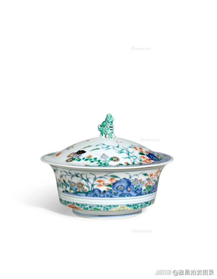 清雍正 斗彩花蝶紋天雞鈕合盌