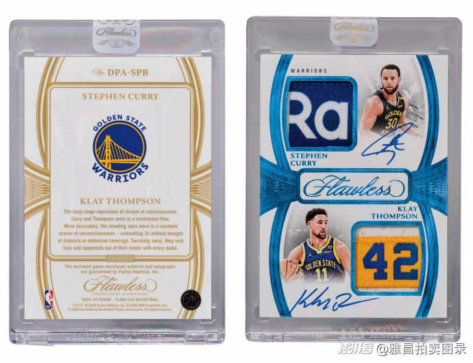2024-25 PANINI FLAWLESS 斯蒂芬 庫里 克萊 湯普森 雙人球衣PATCH實物簽字球星卡 1/1