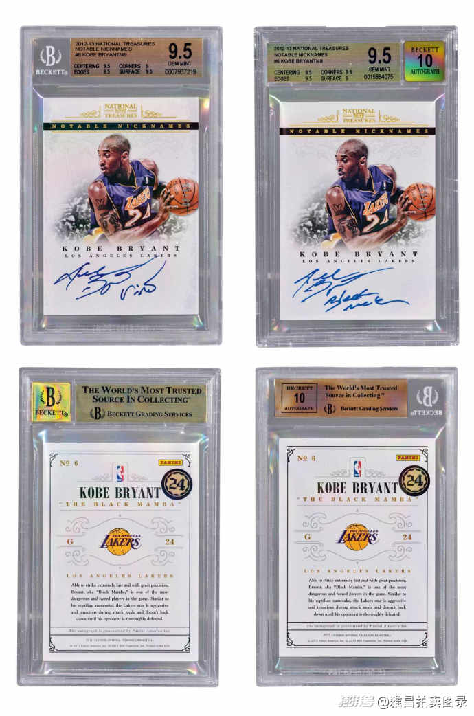 2012-13 PANINI NATIONAL TREASURES 科比 布萊恩特 親筆銘文簽字球星卡 VINO 06/49 BGS9.5/10 BLACK MAMBA 41/49 BGS9.5/10 一組兩張