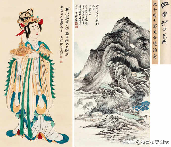 張大千 致王季遷伉儷玉女進(jìn)酒圖、仿曹知白山水 立軸