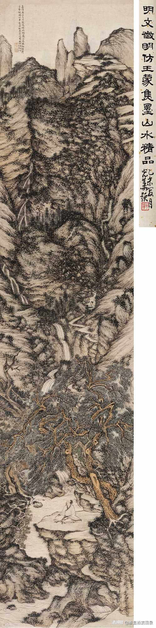 文徵明 嘉靖庚子(1540年)作 仿王蒙松泉高逸圖 立軸