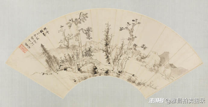 明 藍瑛《仿倪云林山水》扇頁,故宮博物院藏