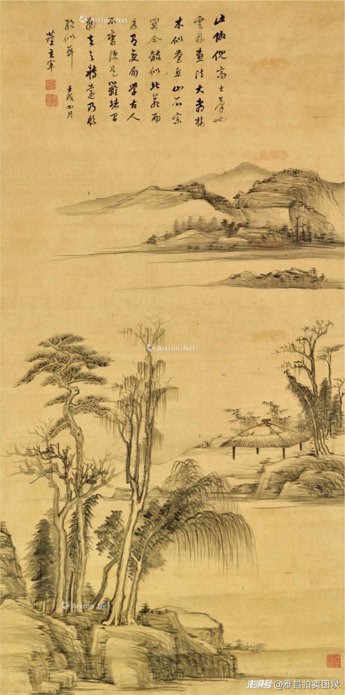 董其昌更狠,不僅仿倪瓚,稱其“天真爛漫,妙處難學”。還直接把他抬上“神壇”,贊其為“南宗畫”的巔峰。他畫的《仿倪瓚山水軸》,故意把線條畫得更“松”,留白更大,還說 “倪瓚的畫,就像禪宗頓悟,懂的人自然懂”。經(jīng)他這么一捧,倪瓚直接成了文人畫的“精神象征”,仿他的人更多了。