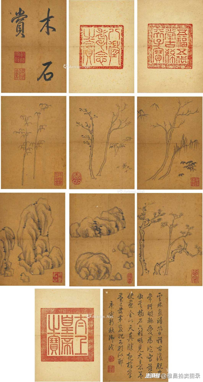 清 1770年作 御臨倪瓚畫譜六幀 冊頁八對開