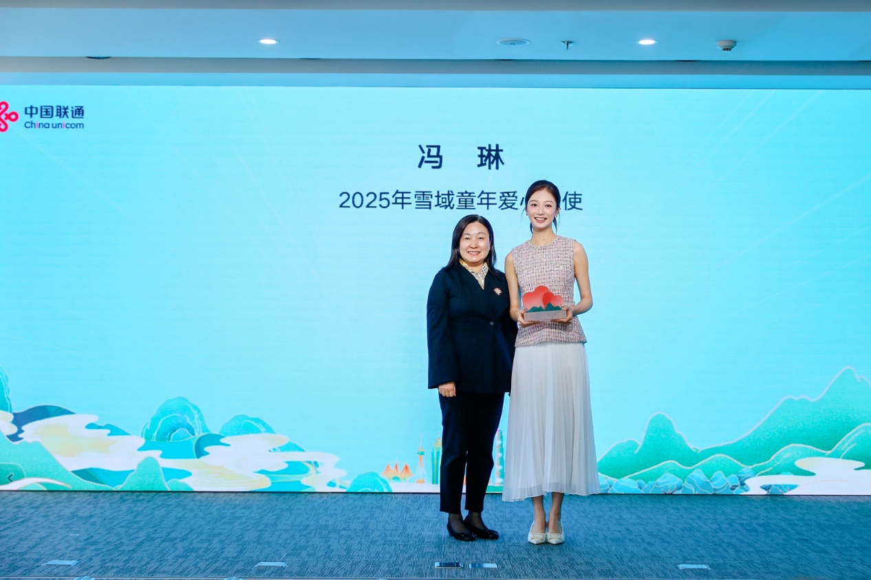 中共上海市經(jīng)濟(jì)和信息化工作委員會二級巡視員徐方向東方衛(wèi)視主持人馮琳授予“2025雪域童年愛心大使”榮譽(yù)牌。