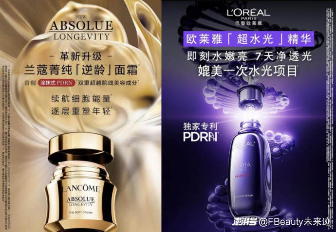 同時(shí),歐萊雅集團(tuán)將PDRN技術(shù)應(yīng)用到旗下兩大品牌中:蘭蔻菁純將PDRN運(yùn)用到「逆齡面霜」中,瞄準(zhǔn)抗衰市場(chǎng);巴黎歐萊雅推出「超水光PDRN精華」,將院線效果引入大眾護(hù)膚領(lǐng)域。如果說其他品牌做PDRN是先有成分信任再有品牌信任,那么歐萊雅兩大核心品牌則是在龐大消費(fèi)者基礎(chǔ)和深厚品牌信任的基礎(chǔ)上,完成成分信任的建立和市場(chǎng)收割。