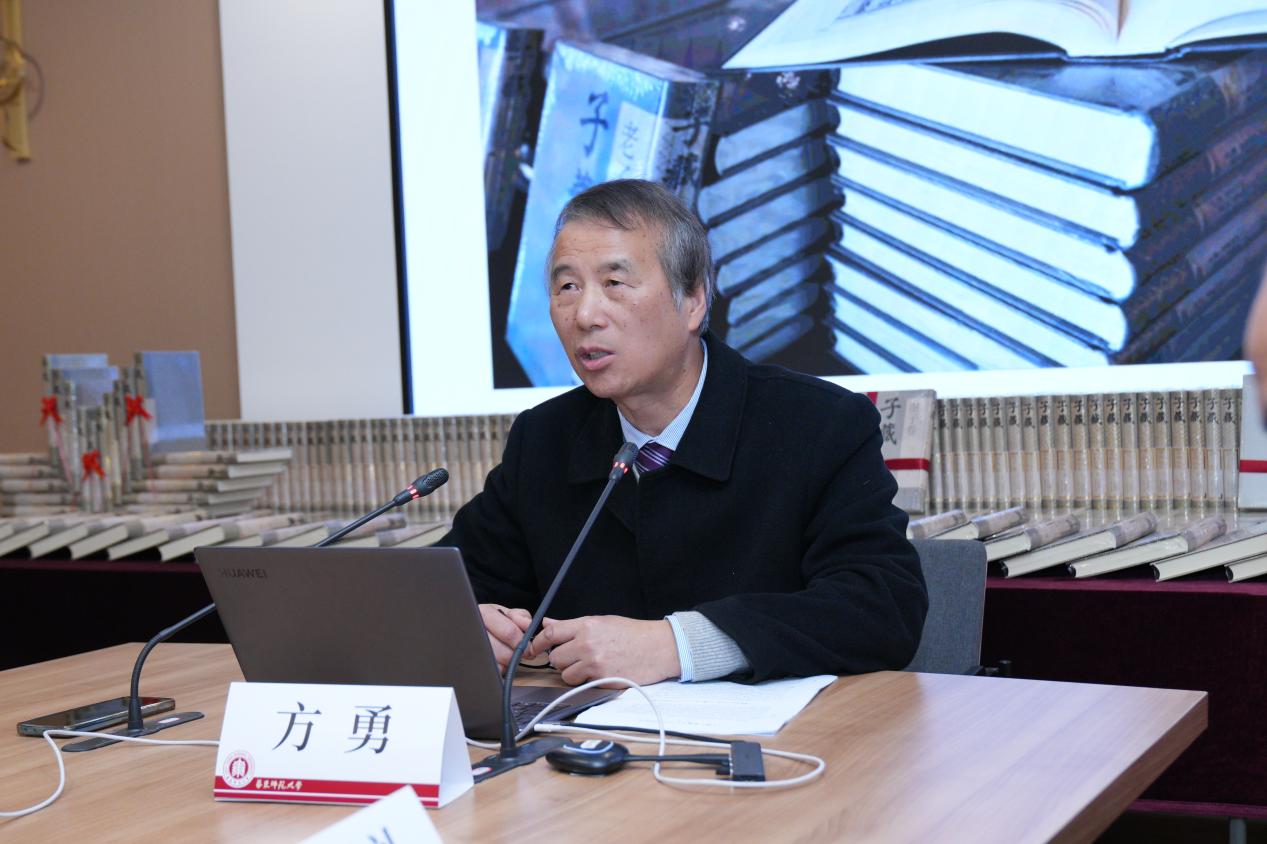 方勇院長在講話中指出,我國豐富的文獻典籍是中華民族創(chuàng)造的重要文明成果,不僅是中華文明賡續(xù)數(shù)千年的歷史見證,也是人類文明的瑰寶之一,其中諸子文獻所承載的思想學說是中華傳統(tǒng)文化的一座高峰,對后世產(chǎn)生了廣泛而深遠的影響。有鑒于此,《子藏》項目的宗旨,不只是古籍文獻的整理,更是要通過子學邊界的重新界定、子學文獻的整體梳理與出版,推動子學從兩千多年來“隱”的狀態(tài)重新進入大眾視野,積極參與中華文化與文明的再構(gòu),以子學精神重塑中華文化自信。
