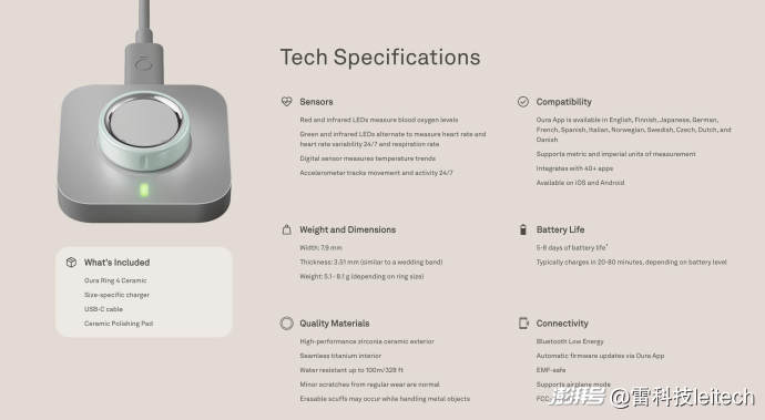 Oura Ring 4 陶瓷版具體參數(shù)(來源:Oura)