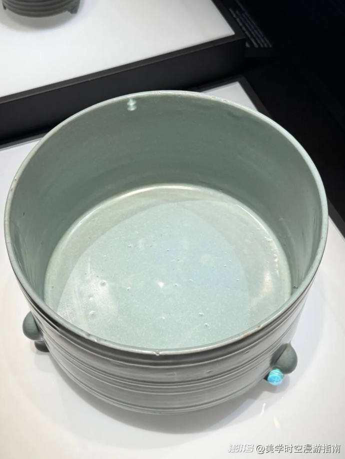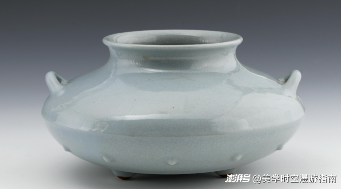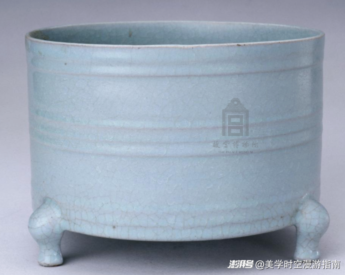 [汝窯淡天青釉弦紋三足樽式爐,口徑18厘米,北宋,故宮博物院]