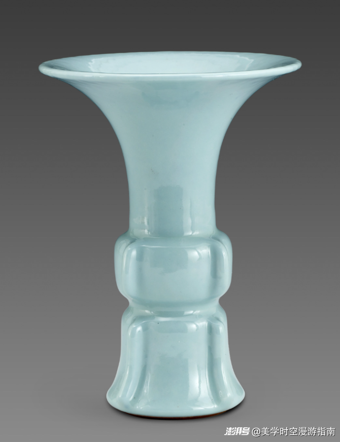 [上圖為汝窯美人觚示意圖,景德鎮(zhèn)窯天藍釉花觚,清乾隆,上博官網(wǎng)]