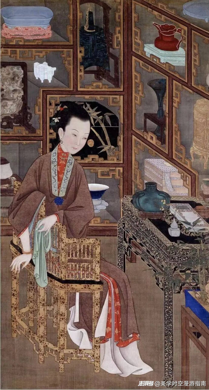 這幅畫所展現(xiàn)的,就是當(dāng)時最頂層貴族仕女的生活場景了,汝窯作為頂級審美,是必定要出現(xiàn)的元素。而且,在曹雪芹的《紅樓夢》里,如此名貴的汝窯,也只出現(xiàn)在三個人的生活場景中。