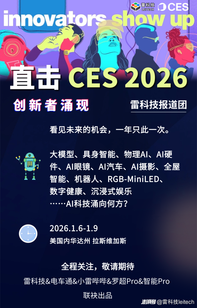 作為中國(guó)報(bào)道科技展會(huì)最悠久、最深入、最專(zhuān)業(yè)的新媒體,雷科技CES2026報(bào)道團(tuán)正在進(jìn)行緊張的前期籌備。屆時(shí)雷科技將派出史上最大規(guī)模的CES報(bào)道團(tuán),并由雷科技創(chuàng)始人兼總編輯羅超帶隊(duì),對(duì)CES2026進(jìn)行一線(xiàn)、專(zhuān)業(yè)和立體報(bào)道,敬請(qǐng)期待!