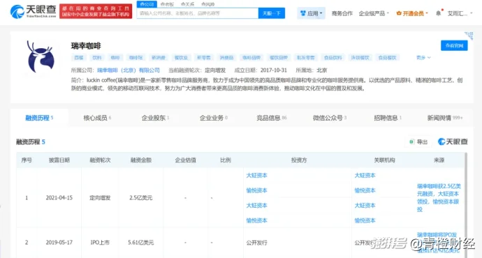 但令人沒(méi)想到的是,退市成為瑞幸重生起點(diǎn)。天眼查數(shù)據(jù)顯示,2021年4月,“老朋友”大鉦資本與愉悅資本注資2.5億美元,為其續(xù)上一口氣。隨后,瑞幸內(nèi)部啟動(dòng)一輪“刮骨療毒”,陸正耀等原管理層出局,不盈利的門(mén)店被關(guān)閉,徹底告別了過(guò)去的“一言堂”與盲目擴(kuò)張。