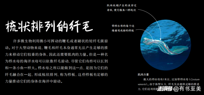 比如球櫛水母靠著一排排像梳子一樣的纖毛,可以在水中優(yōu)雅地游動(dòng)。