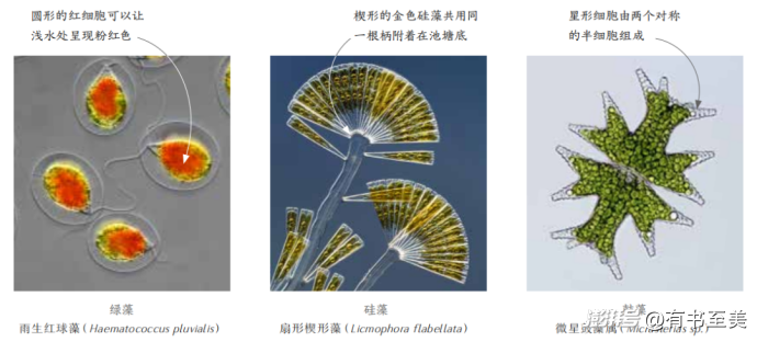 而綠藻、硅藻、鼓藻等藻類(lèi)和植物類(lèi)似,都是通過(guò)光合作用吸收光能,制造糖分和其他有機(jī)物。